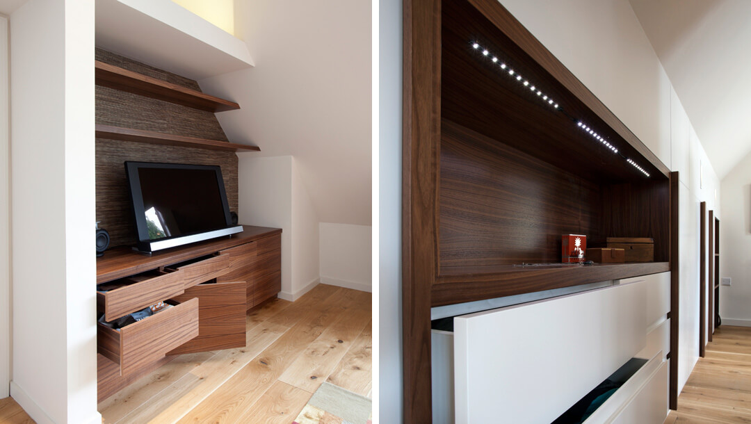 The conversion of an empty loft space into a beautiful master bedroom with dressing room and en-suite, retaining and maximising the light within the space